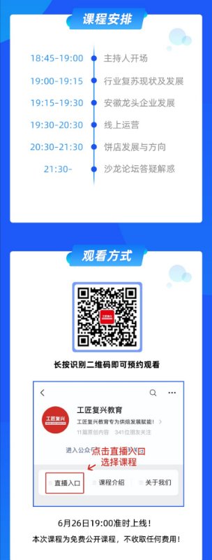 疫后烘焙行業(yè)復蘇,如何經(jīng)營與管理?后疫情時代,烘焙餅店對發(fā)展與方向?如何打破傳統(tǒng)經(jīng)營模式,開啟線上新運營? 由安徽省烘焙行業(yè)協(xié)會、安徽采蝶軒蛋糕集團聯(lián)合中糧金焙工匠復興烘焙職業(yè)學校舉辦的“賦能烘焙企業(yè)?安徽烘焙論壇”將于2020年6月26日19:00上線開講!屆時烘焙大咖、中糧金焙工匠復興烘焙職業(yè)學??傌撠熑颂K焜等嘉賓,將在直播間為您解惑答疑,精彩紛呈,敬請期待!